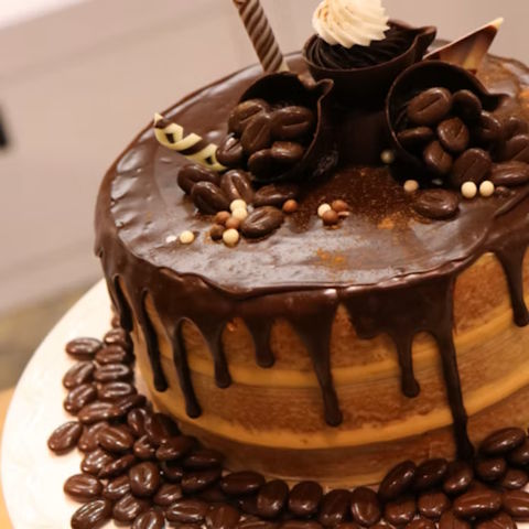 Triple layered Coffee and chocolate cake with chocolate craft work